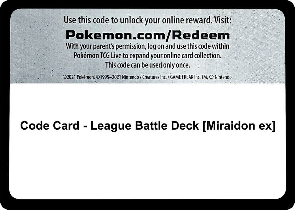 Code Card - League Battle Deck [Miraidon ex] - Code Card Miscellaneous Cards & Products